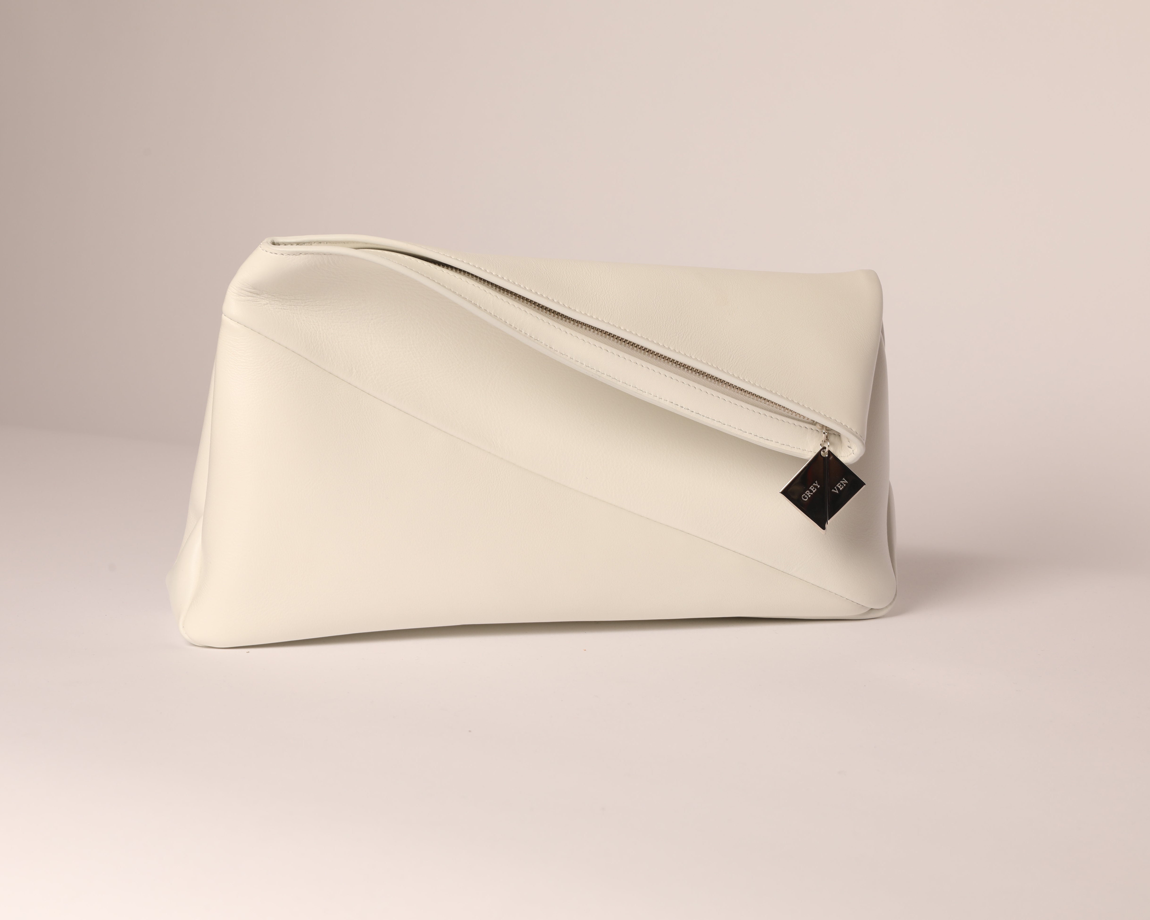 This is a soft, diagonal-folded clutch. This also includes a branded removable card holder.